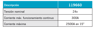 Corriente máxima: 2500A en 15”.