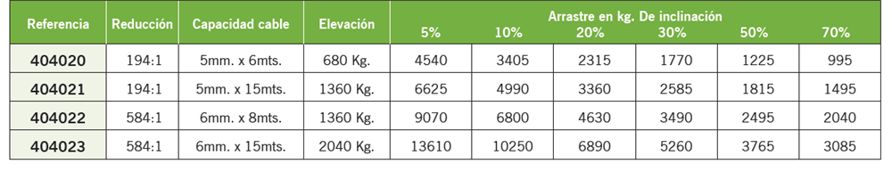 Para el arrastre de embarcaciónes en remolques. Voltaje:12V. Incorporan un sistema de desembarque controlado con freno y bloqueo automático para controlar la velocidad de descenso. Incluye cable flexible de acero galvanizado. Opcionalmente dispone de un mando para el control a distancia. Disponible en varios modelos :