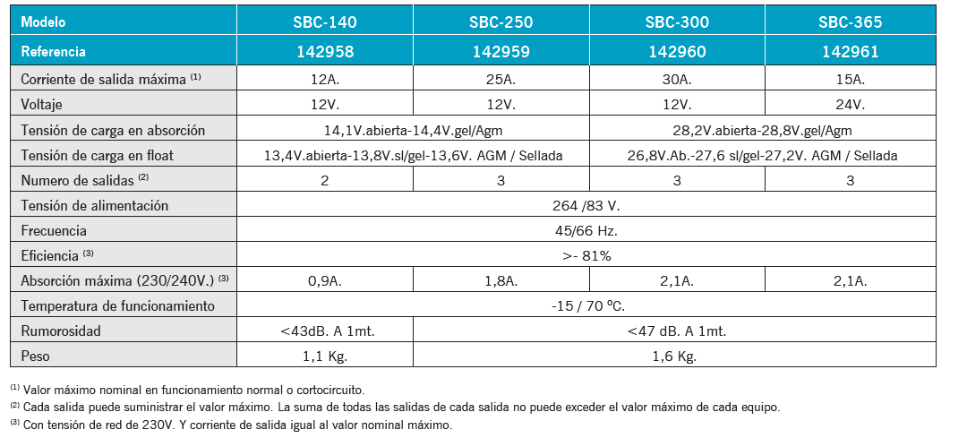 • Salidas múltiples para carga de vários grupos de Baterías.