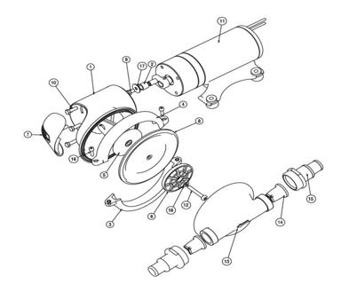 Kit de reparación de la Bomba Jabsco ref.002751 /12Voltios y ref. 002752/ 24Voltios . Contiene el siguiente despiece . Nº 7, 8, 10, 12, 14, 16, 17