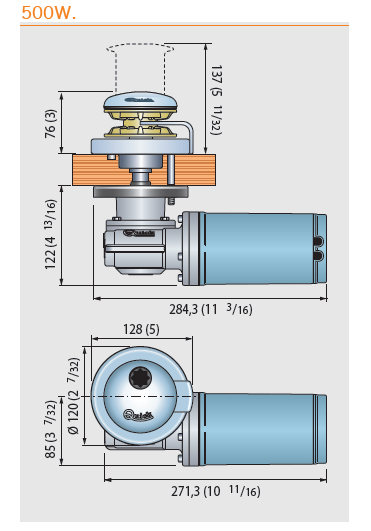 Molinetes eléctricos para maniobras de anclas. Base circular de aluminio anodizado. Eje de acero inoxidable AISI 316, roldana en bronce cromado. Equipados con roldana única que acepta por continuidad el paso de cabo a cadena automáticamente. Todos los modelos se suministran con caja de relés y panel interruptor de subida/bajada y maneta. Están provistos de una protección IP 67 que asegura la estanqueidad del motor. Recomendado para embarcaciones de 6-9 m. • Potencia: 500, 700, 1000 y 1400W. Voltaje: 12 y 24V. • Disponible con y sin tambor para cabo. • Equipado con imán y sensor para la instalación del cuentametros de cadena. • Sistema manual de caída libre de la cadena. • Reductor de aluminio anodizado. • El modelo de 500W.soporta únicamente roldana para cadena de 6mm.DIN766.Los modelos de 700, 1000 y 1400W. Soportan cadena de 8 y 10mm.DIN766. • Los modelos de 700 y 1.000W. llevan instalada la roldana de 8mm. Y el de 1400W. La de 10mm. En caso que desee una roldana diferente a la instalada de serie indique lo al realizar el pedido.